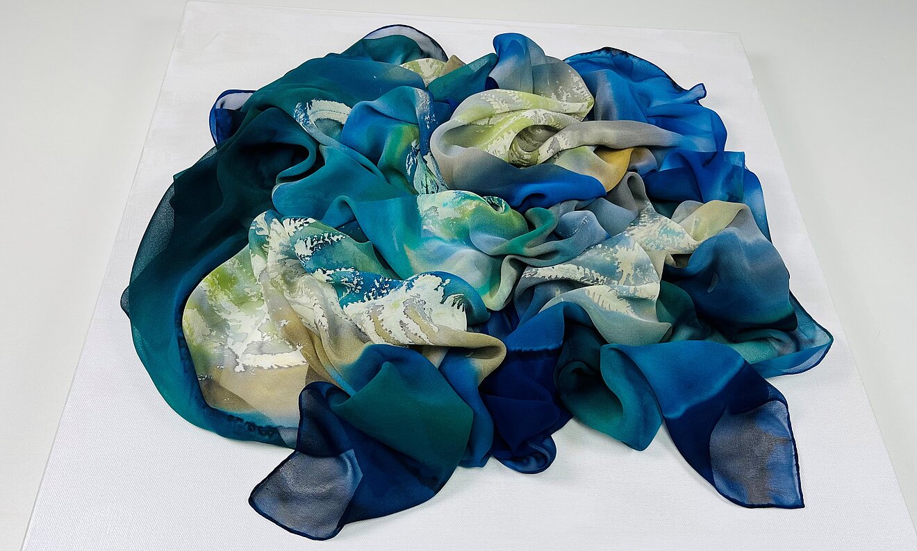 Die neue Frühlingskollektion besteht aus Foulards in wunderbaren, weich fliessenden Seidenqualitäten Crèpe Satin, Crêpe de Chine und Pongé. Die Spitzenfragmente auf Seide gedruckt sind inspiriert aus dem Kunstprojekt "Frauenfleiss & Hexenkraut".